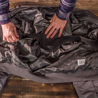 Step 3- Unpeel the Velcro patches and place inside the coat. Do this for all 3 adhesive backed Velcro pads.